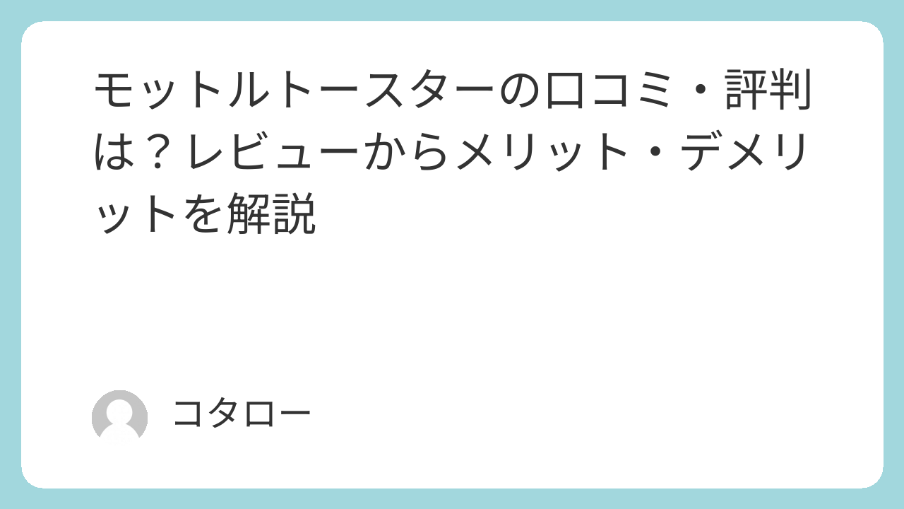 今回は、実際の口コミ・評判をもとにモットルのトースターのメリット・デメリット・向いている人まで詳しく解説してきました。