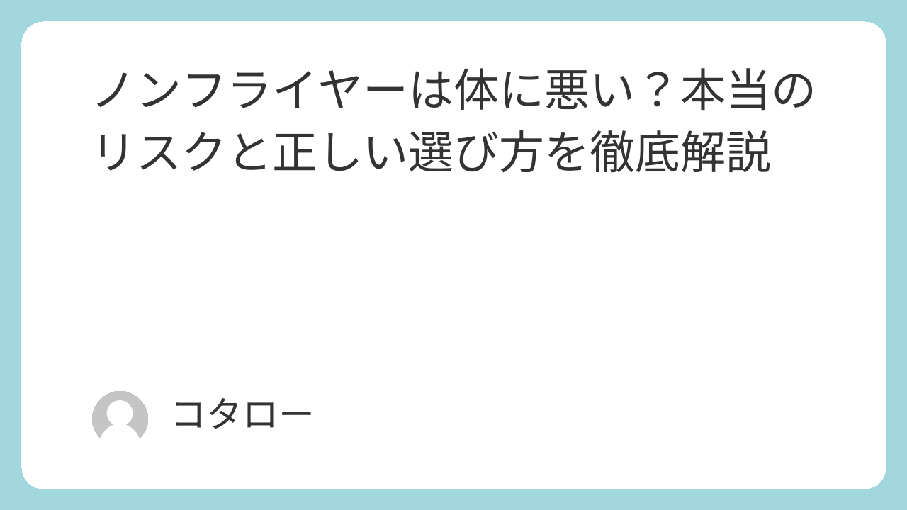 そこで今回は、ノンフライヤーは体に悪いのではないかという不安を一つずつ分解し、実際の安全性も考慮して後悔しない判断ができるように解説していきます。